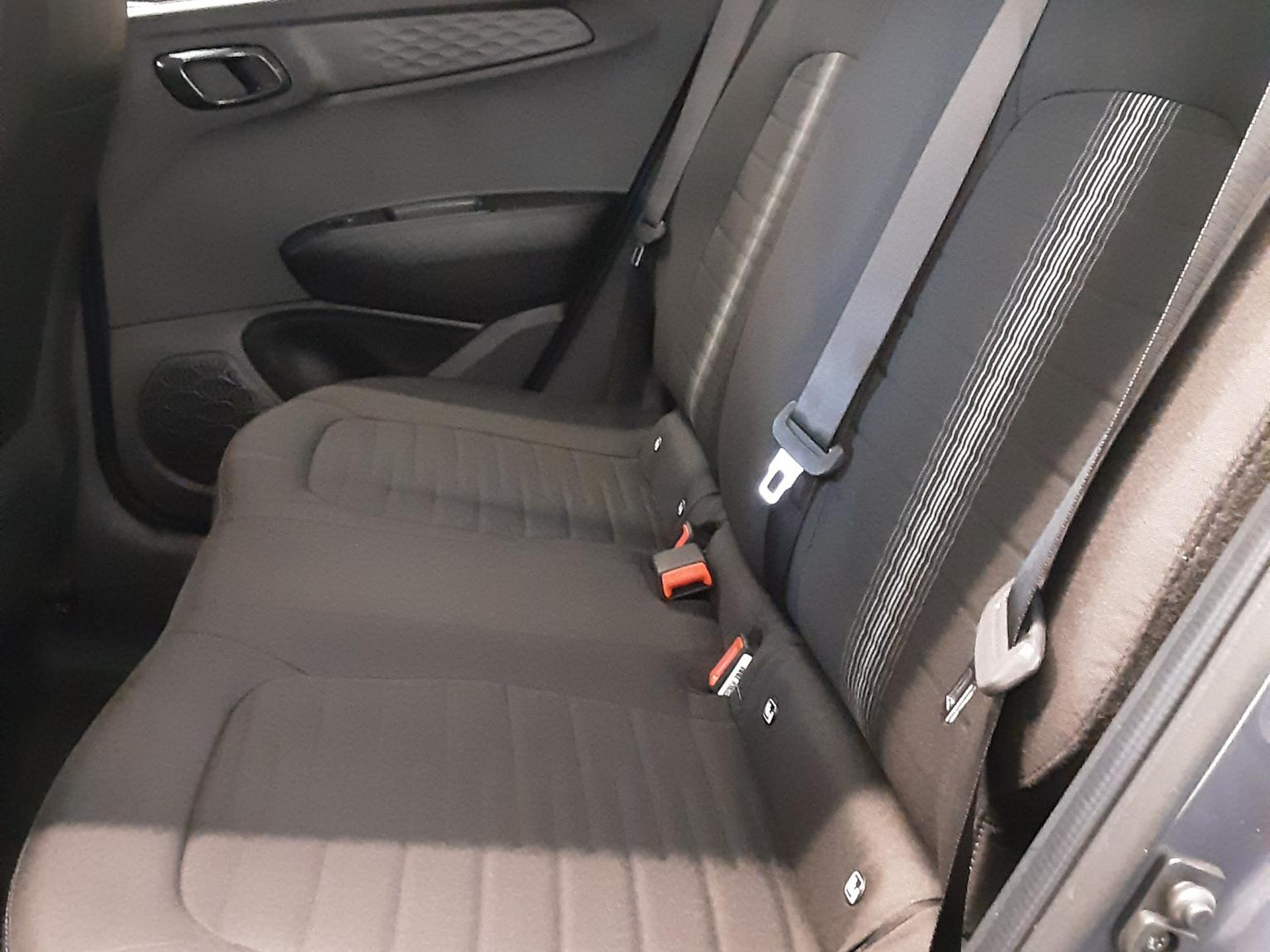 - 3 asymmetrische neerklapbare zitplaatsen achterin in de vorm van een gedeelde bank naar voren kijkend zonder elektrische verstellingen met een gedeeld opklapbaar kussen