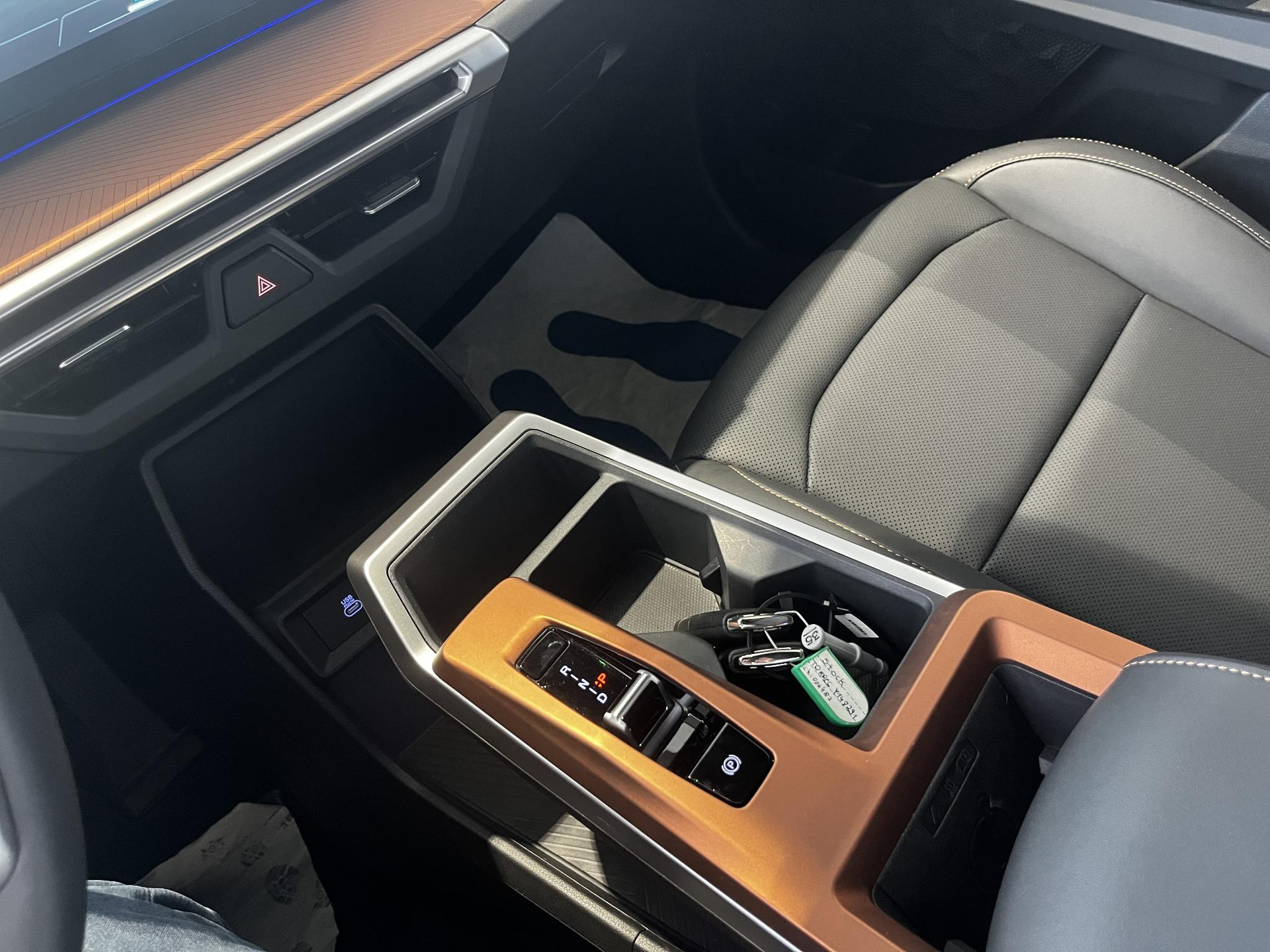 - Luxe licht metaal look afwerking op de pookknop, licht metaal afwerking op de centrale vloerconsole, Alluminium look en Synthtisch leer en alu look en kunstleer