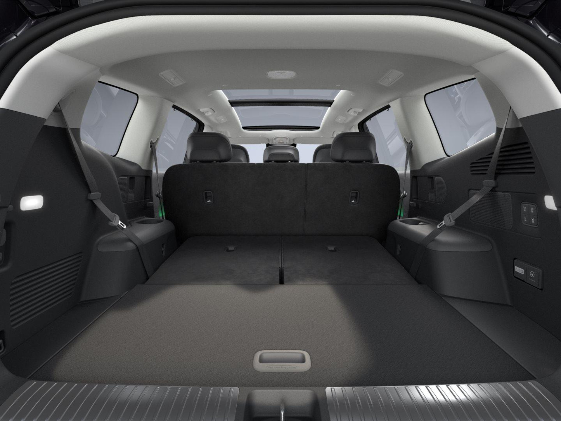 - 2 symmetrishce opklapbare in de vorm van individuele zetels zitplaatsen op de derde rij naar voren kijkend elektrisch opvouwbaar en Neerklapbaar via Afstandsbediening