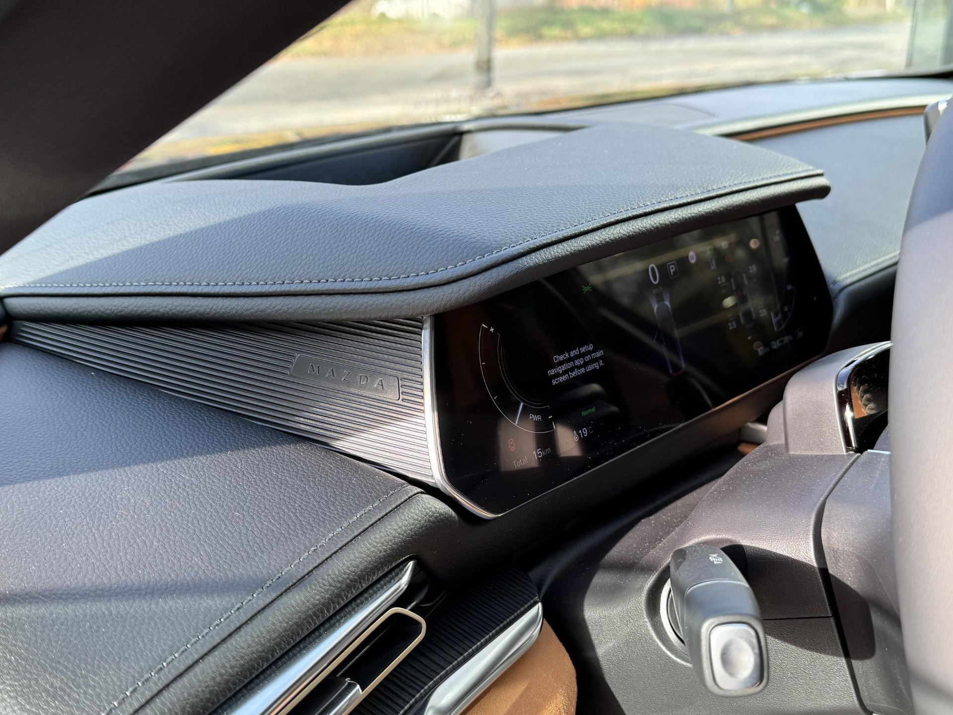 - Luxe metalen afwerking op de centrale vloerconsole, suède afwerking op de deuren en hout en suede afwerking op het dashboard