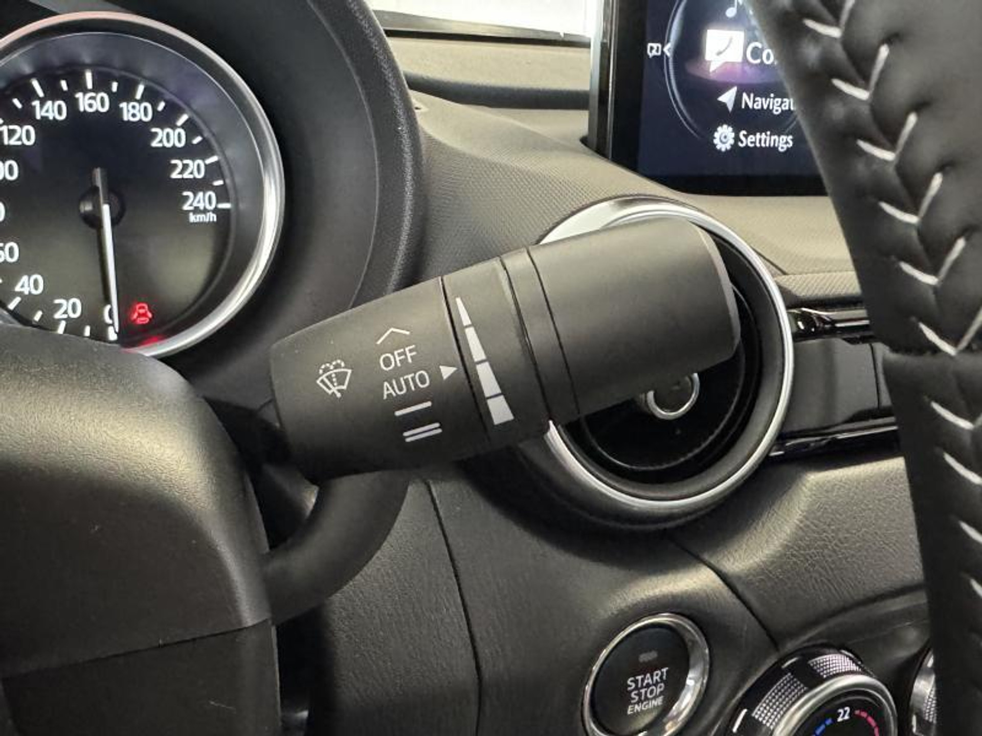 De achteruitrijcamera laat duidelijk zien hoeveel ruimte u nog heeft bij het inparkeren. Ook is de auto voorzien van automatische airconditioning. Alle belangrijke audiofuncties heeft u onder handbereik met de audiobediening op het stuur. Van een paar vegen bij motregen tot maximale stand bij noodweer: de regensensor reageert zelfstandig en direct. Relaxt rijden is meegeleverd in de vorm van cruise control. U bent in deze Mazda ook voorzien van keyless entry, automatisch dimmende binnenspiegel, lederen stuur, centrale portiervergrendeling en boordcomputer.