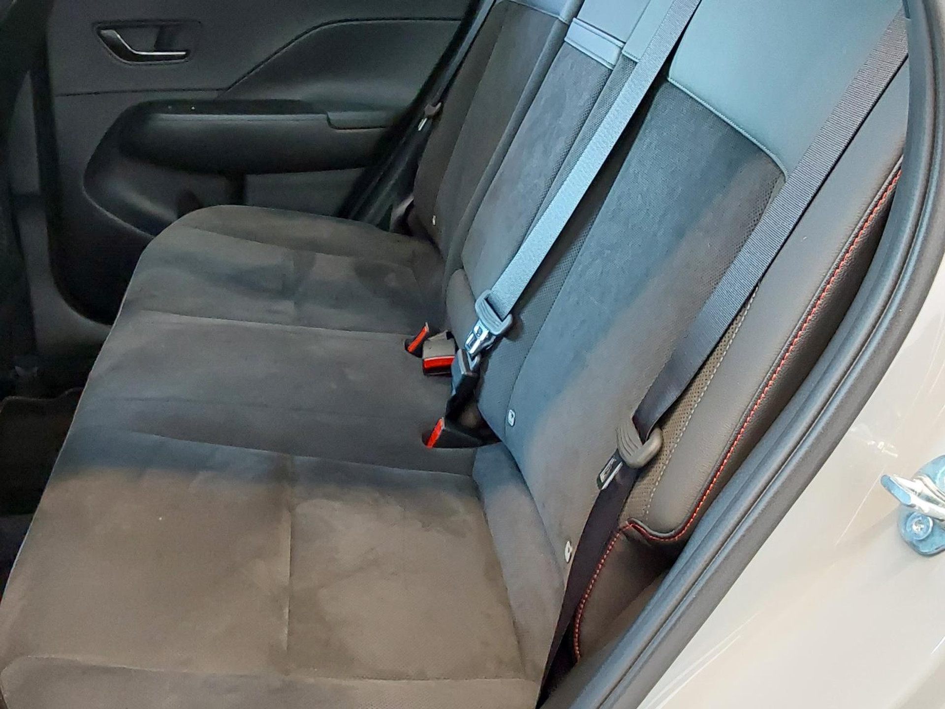 - 3 asymmetrische neerklapbare zitplaatsen achterin in de vorm van een bank naar voren kijkend zonder elektrische verstellingen met een niet verwijderbaar opklapbaar kussen