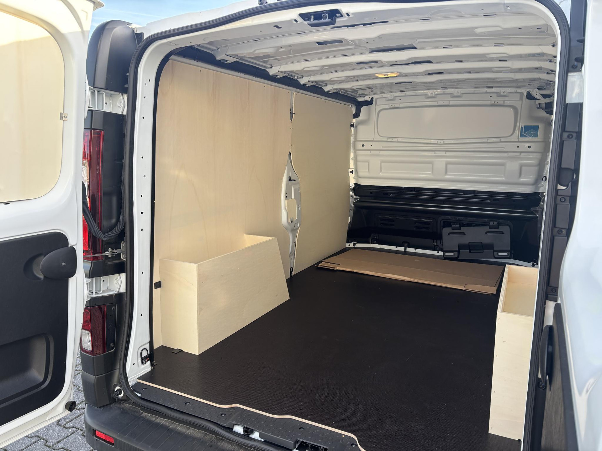 - De bedekking van de zijkant in de laadruimte is van hout