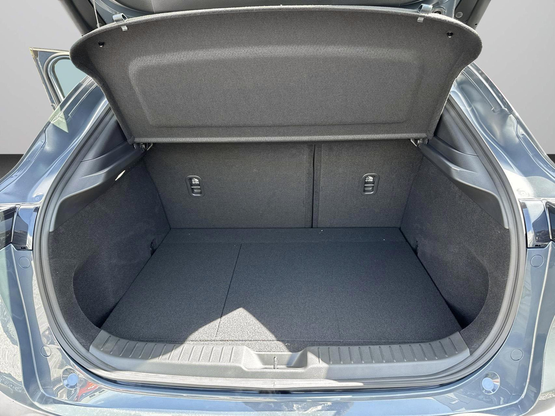 - 3 asymmetrische neerklapbare zitplaatsen achterin in de vorm van een gedeelde bank naar voren kijkend zonder elektrische verstellingen met een niet verwijderbaar opklapbaar kussen plat te vouwen op de vloer