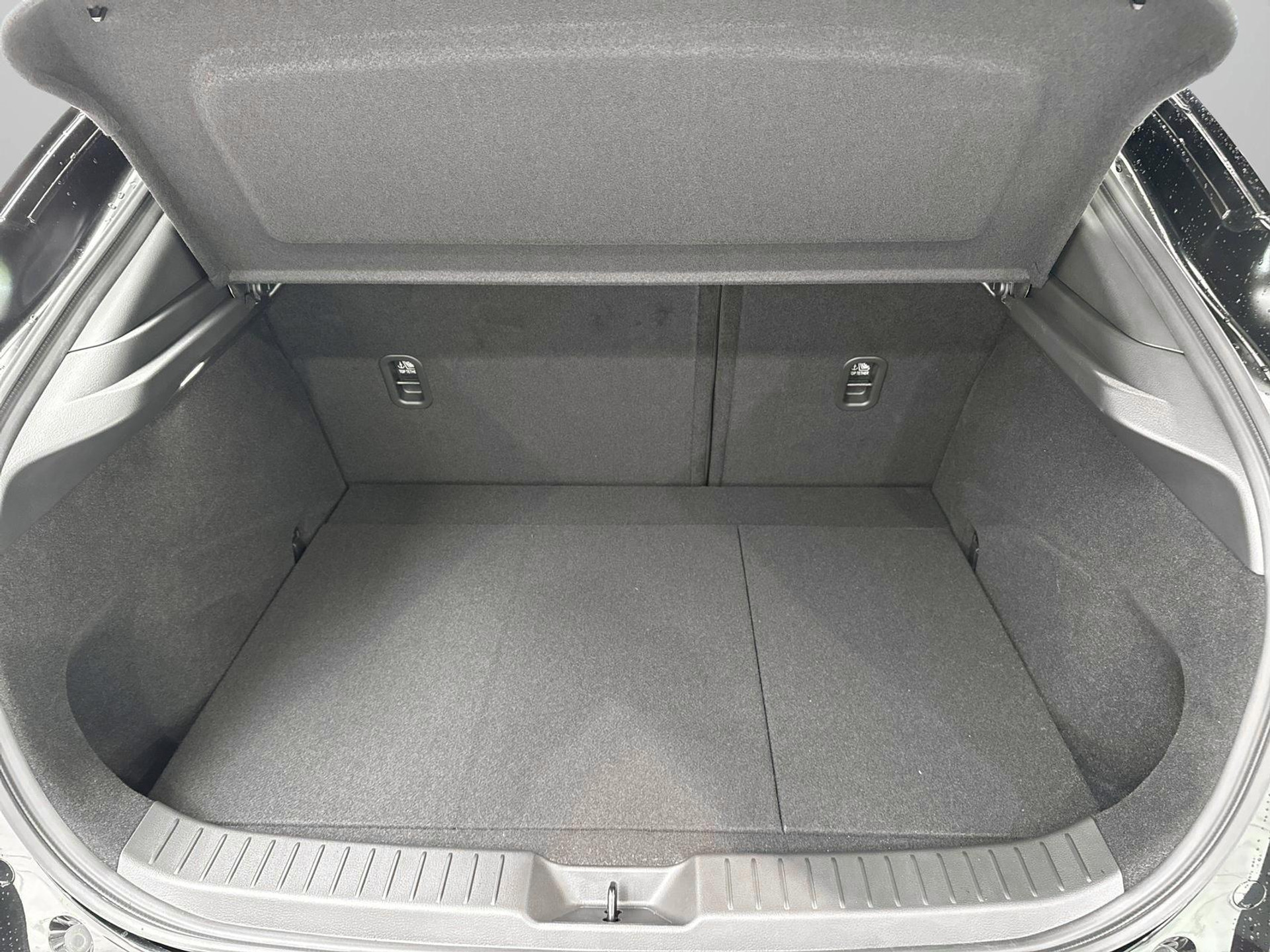 - 3 asymmetrische neerklapbare zitplaatsen achterin in de vorm van een gedeelde bank naar voren kijkend zonder elektrische verstellingen met een niet verwijderbaar opklapbaar kussen plat te vouwen op de vloer